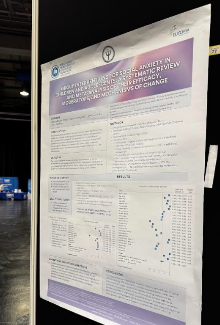 Drd. Miruna Bianca Crișan a prezentat vineri, 5 septembrie 2025, în cadrul EABCT 2025 – European Association for Behavioural and Cognitive Therapies Congress, desfășurat la Scottish Event Campus, Glasgow (3–6 septembrie 2025), studiul: „Group Interventions for Social Anxiety in Children and Adolescents: A Systematic Review and Meta-Analysis of Their Efficacy, Moderators, and Mechanisms of Change”.